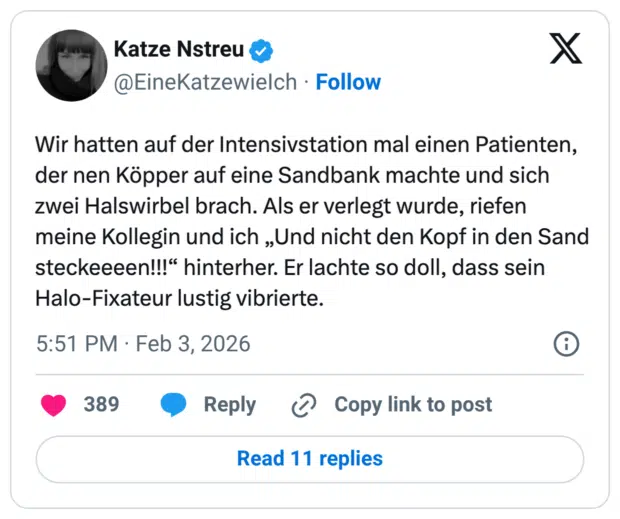 Moin moin, aus dem digitalen Fundbüro. Gestern habe ich es gewagt und das Haus verlassen und was soll ich sagen, außer ein paar Eisbären, Schneeleoparden und verirrten Pinguinen habe ich keine spannenden Dinge gesehen. Warum ist es eigentlich so, dass es als Kind deutlich lustiger war, auf spiegelglatten Treppen auszurutschen und auf dem Hintern zu landen? Man ist einfach aufgesprungen, hat sich geschüttelt und es noch mal mit Anlauf probiert. Wenn mir das allerdings heute passiert, stehe ich zwar relativ zügig wieder auf und tue so, als wäre alles ok, krümme mich dann aber heimlich tagelang auf dem Sofa und stöhne bei jeder Bewegung, die mein alter Körper machen muss.